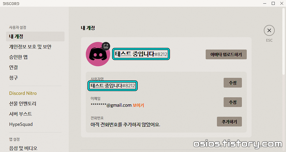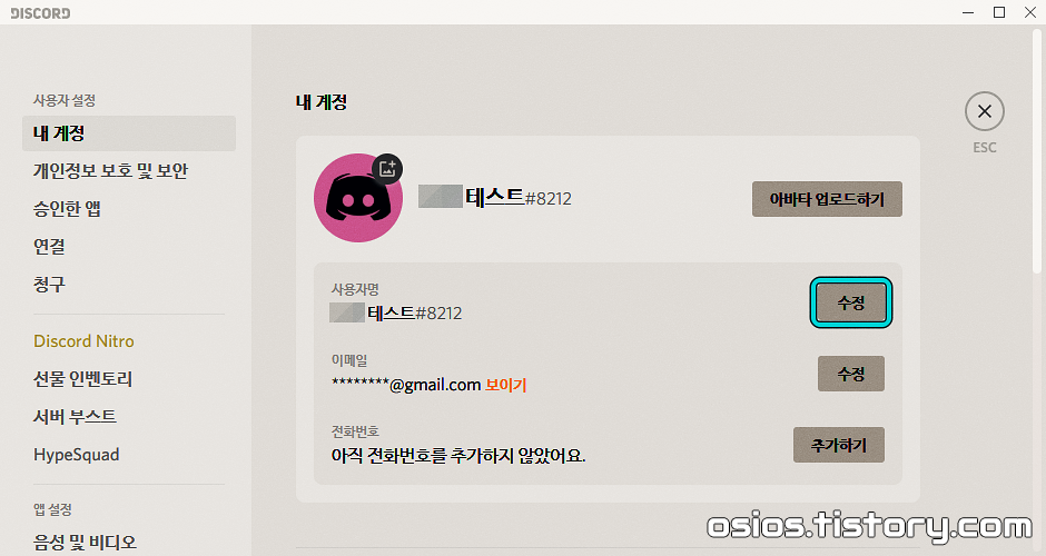 이어서 사용자명 오른쪽의 수정 버튼을 이용하면 닉네임을 바꿀 수 있습니다.