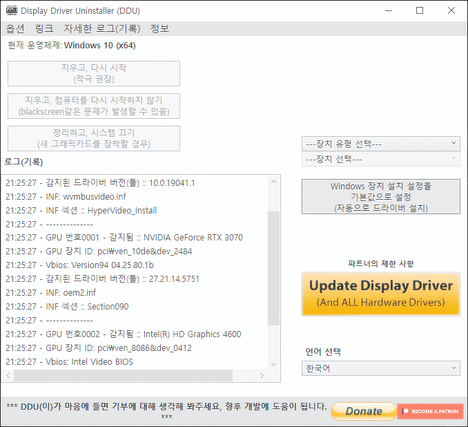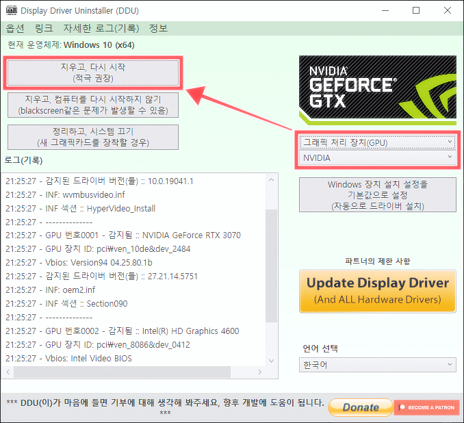 DDU 사용법 - 그래픽카드 드라이버를 완전 삭제하는 방법