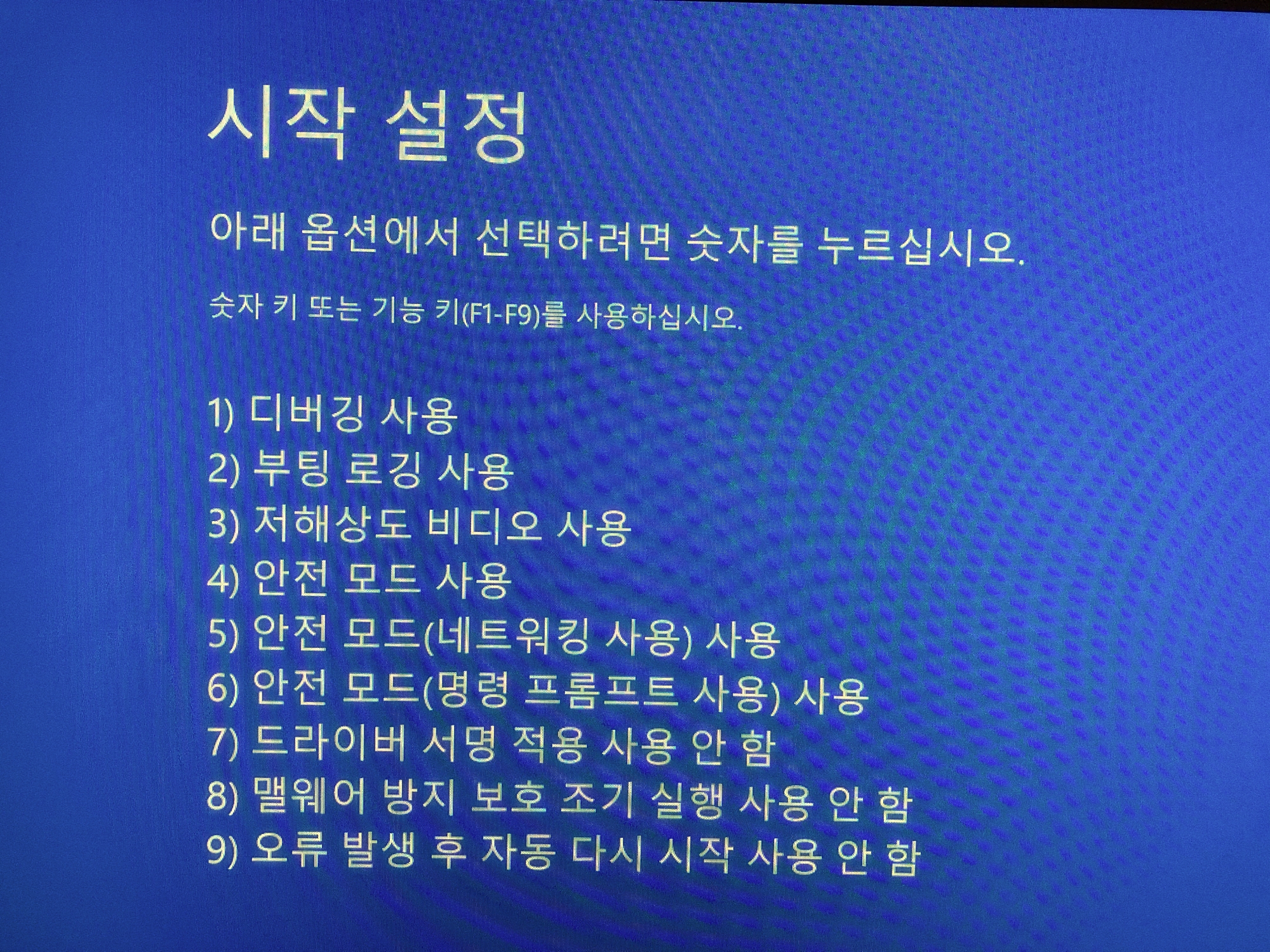 그럼 파란 화면이 다시 나타나는데, 키보드에서 4를 꾹 누르는 순간 남은 부팅이 마저 진행됩니다.